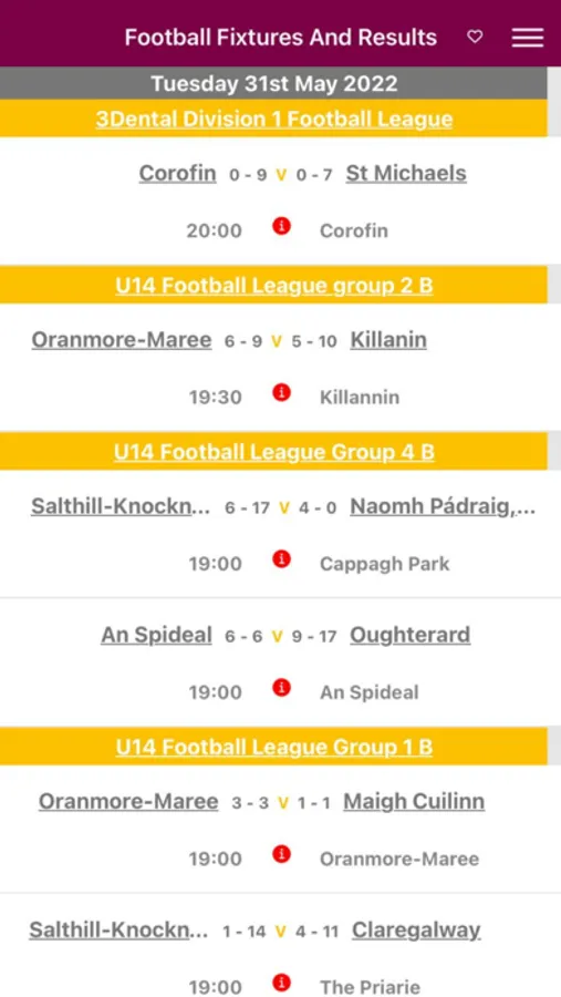 Football and Galway Hurling. View results and fixtures for clubs and