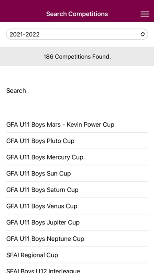 competitions. View competition league standings. Add clubs and competitions to