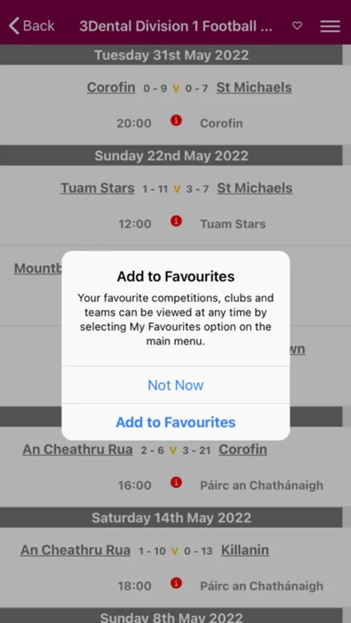 you favourites for easy reference. Find game details such as team sheets and