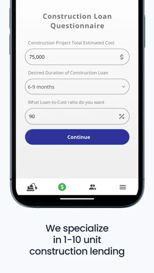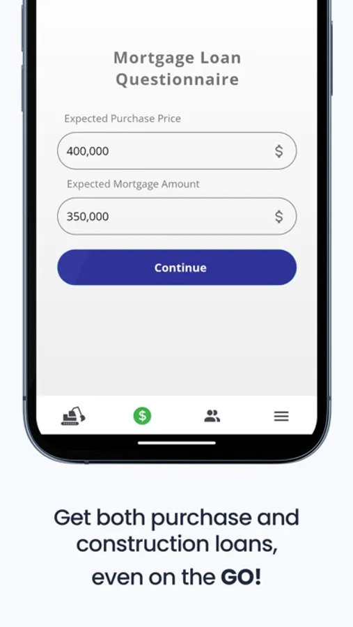 • No hassle – super easy app starting with a simple construction loan questionnaire