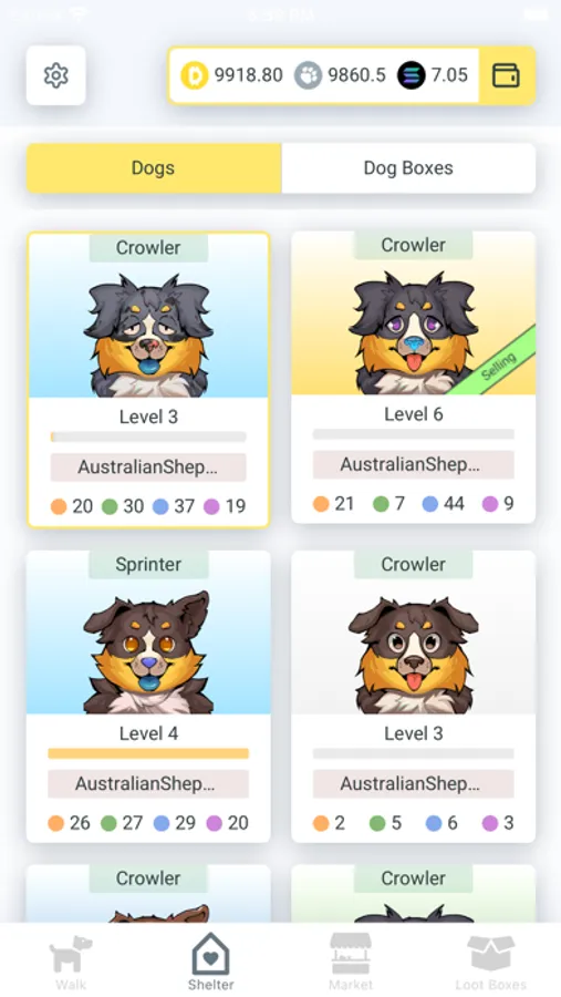 Each dog is an NFT that brings you tokens, that could be later exchanged or used in the app to get even more tokens!
