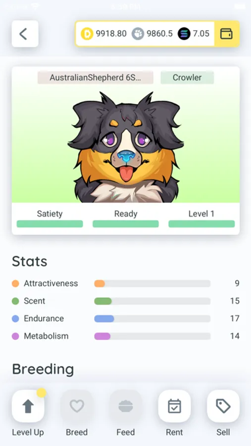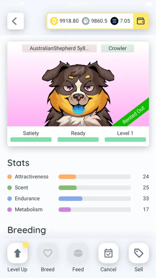 Don't care for walking or don't want to burden yourself with a pet? It's okay! Our "renting" mechanics will allow you to either send your dogs with a dedicated walker, or take care of others' dogs for a percentage of tokens.