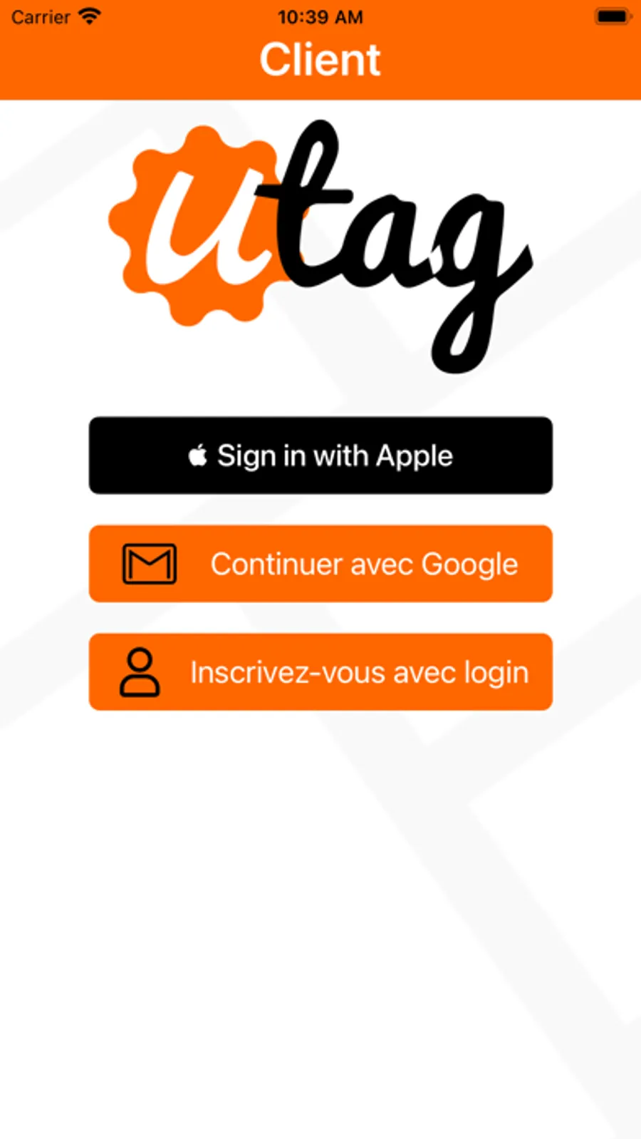 Utag est une application de dispatch de livreurs indépendants pour fournir des services de livraisons aux clients enregistrés indépendamment sur le système. Elle inclut les services de traçage de colis en temps réel, paiement course, scanner de Code QR pour obtenir les informations du livreur, enregistrement des livreurs par des prestataires de services indépendants. L'application renferme trois fonctionnalités : livreur, client et business. CLIENTS: la fonctionnalité Clients, permet aux utilisateurs de s'enregistrer, chercher sur la carte les livreurs disponibles, recevoir des messages, suivre le colis, payer la course et scanner le code QR du livreur.