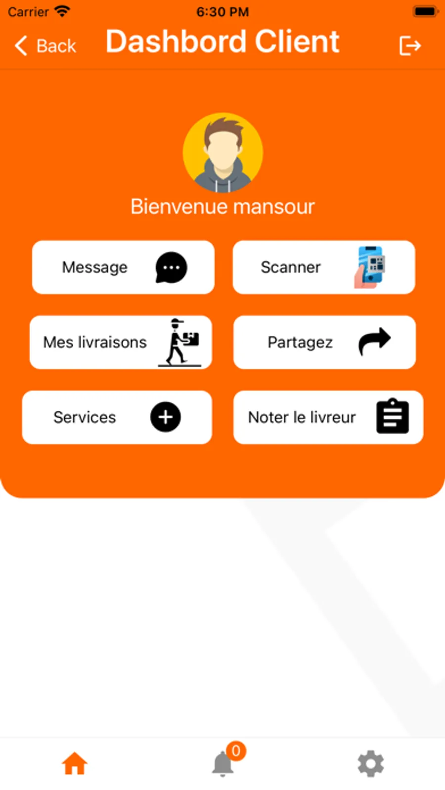 Une partie Client, avec la possibilité de scanner le QR code du livreur et en extraire ses informations telles que la localisation, l'identité et et la durée avant réception du colis.