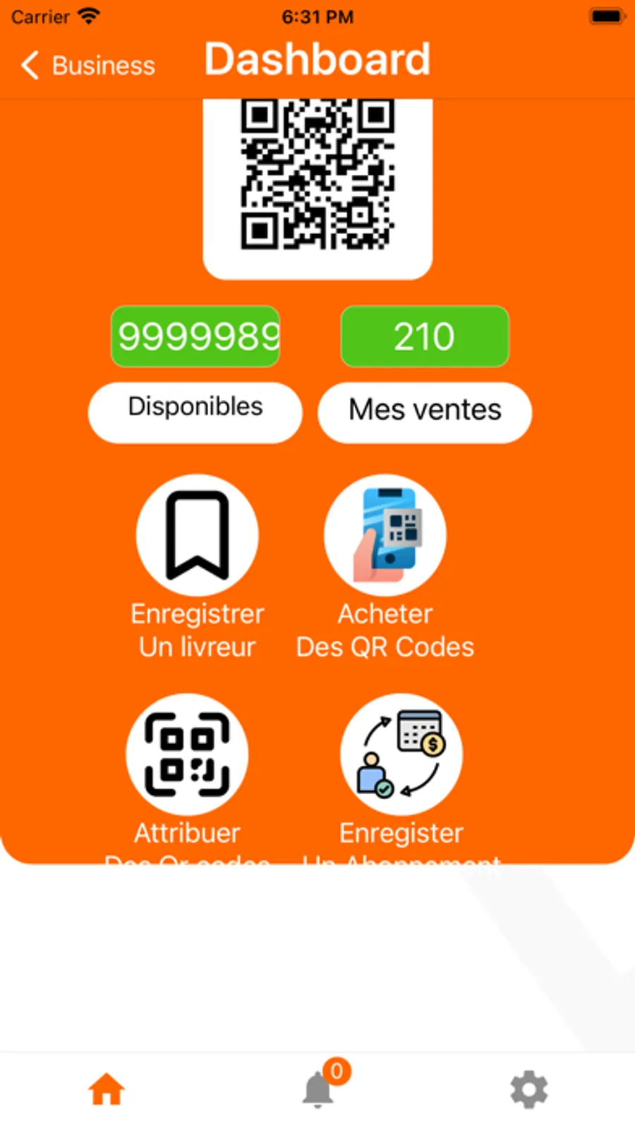 Les QR codes pour la partie business permettent aux partenaires business de pouvoir enregistrer les informations du livreurs, de vendre les codes et s'affilier a chaque livreur.