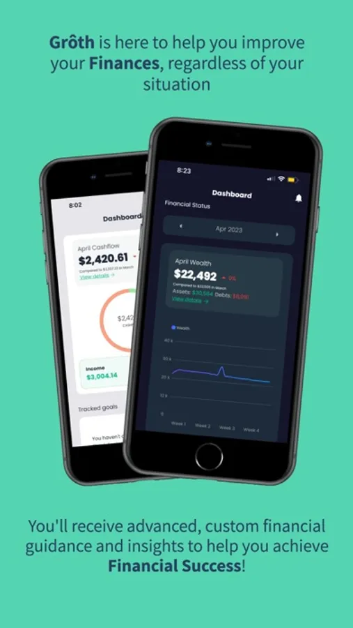 Discover the effortless way to achieve financial success with Grôth, the innovative financial planning app that requires minimal user input and NO budgeting. Grôth transforms the way you approach your finances, putting the focus on planning and growth rather than strict budgeting. It's about time you threw away those old spreadsheets and budgeting restrictions, it's time to start experiencing your money.