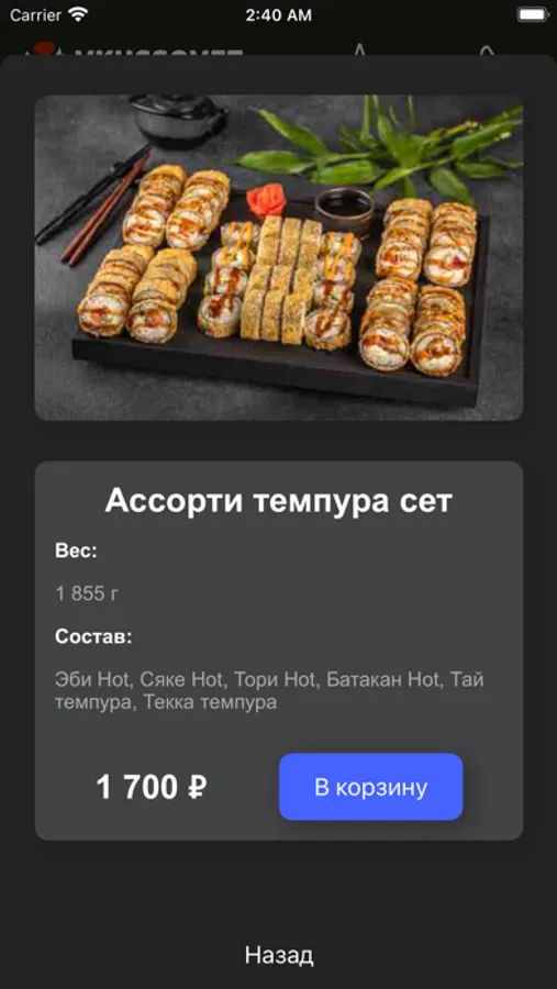 Полное меню Японской, Азиатской и Европейской кухни в удобном формате на вашем телефоне. Всего несколько кликов и самые вкусные авторские роллы, сочная пицца в течение 60 минут будет уже у Вас.