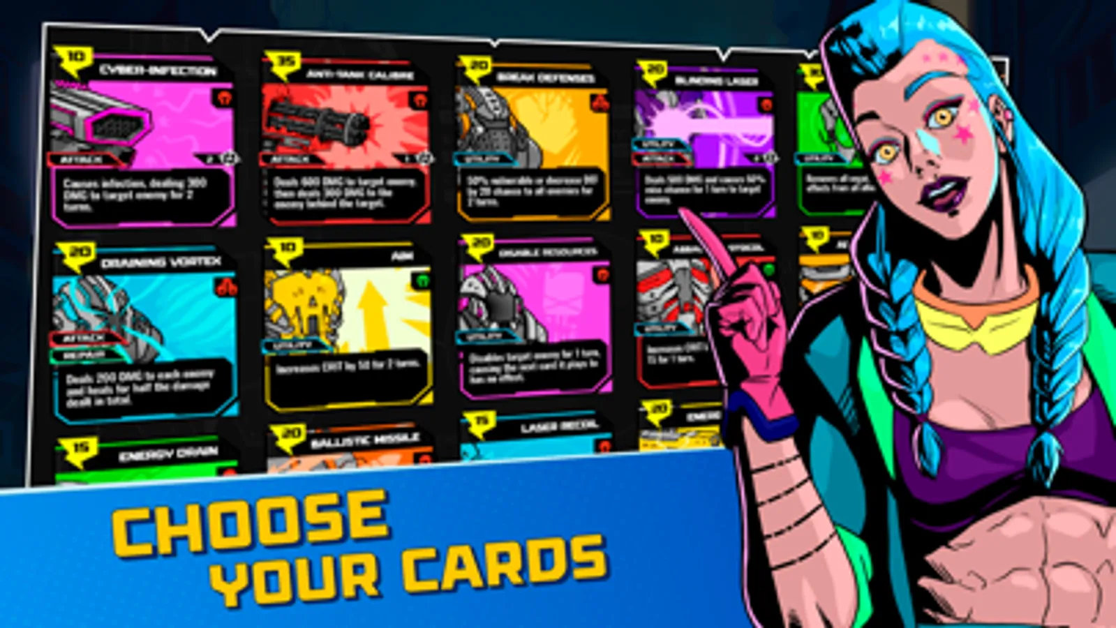 Customize your deck of cards, upgrade your robots to face challenging opponents and become the winner. Are you ready to show your skills?