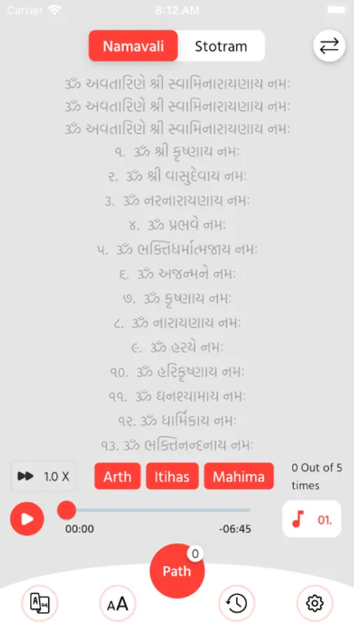 → While listening to the audio path, the Murti of Maharaj can be displayed or the lyrics.