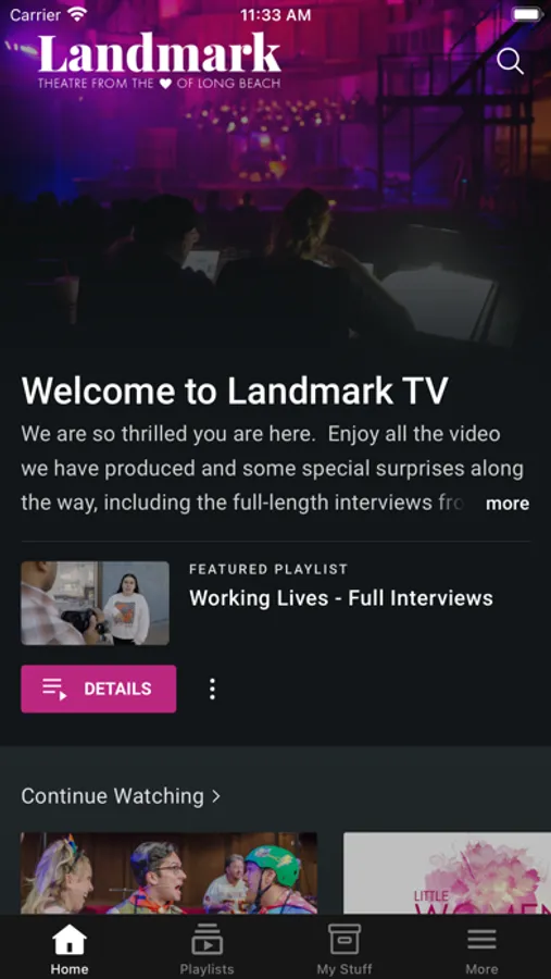 Welcome to Watch Landmark - the TV platform for all video content from Long Beach Landmark Theatre Company. Here on Landmark TV you can watch all of our video content, including production shorts, music videos, short video interviews as well as the full-length interviews from our production of Working: A Musical.