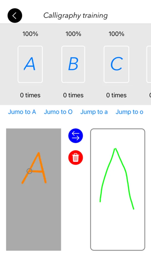 - For learning calligraphy, use the grey rectangle on the right side of the screen.