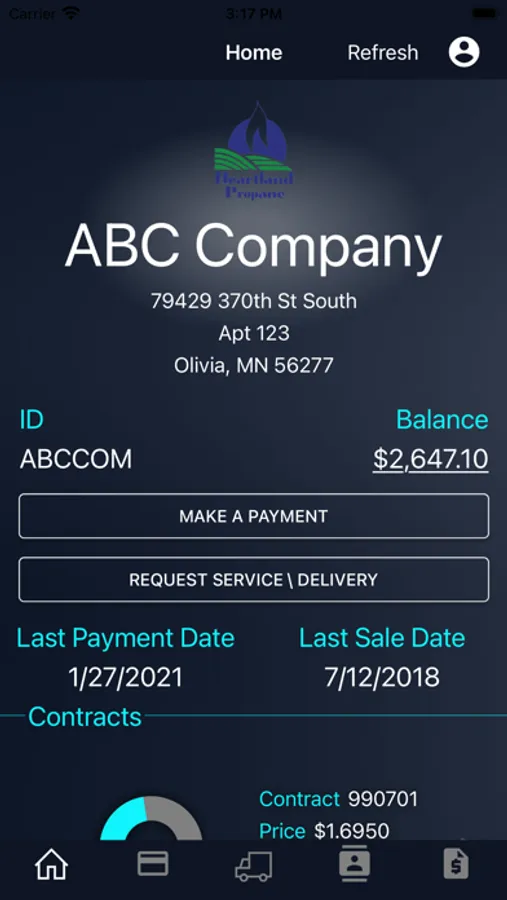 Information at your fingertips! This app gives you direct access to your account balance, location and contract information. It also gives you the ability to store and process payment and request service work and deliveries directly through the app.