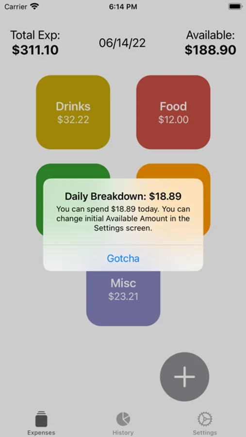 Simple, private, no-frills app which keeps track of expenses and breaks down how much you can spend until your next paycheck. Adjust the Available Amount and the Pay Date to make the numbers accurate.