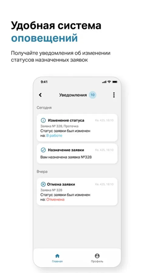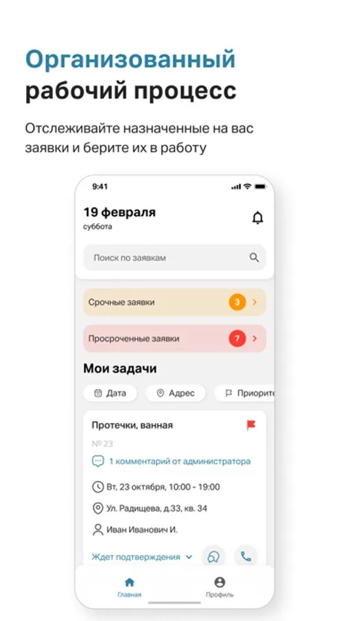 Все заявки, график работы и акты в мобильном приложении Simple Service Pro для сотрудников управляющих компаний.