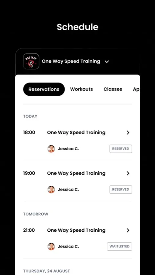 For members of One Way Speed Training to reserve their place in a class, sign up for gym events, and general account management like updating headshots and credit card on file.