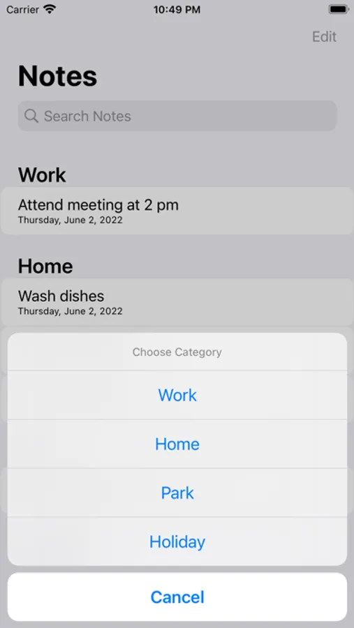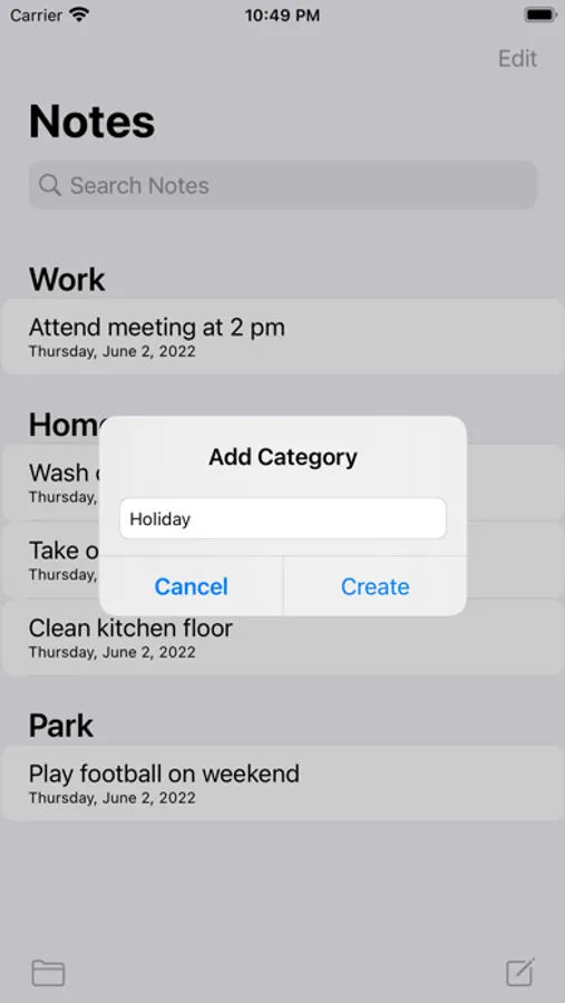 Simple NoteApp to create your own categories and notes to keep you well organised