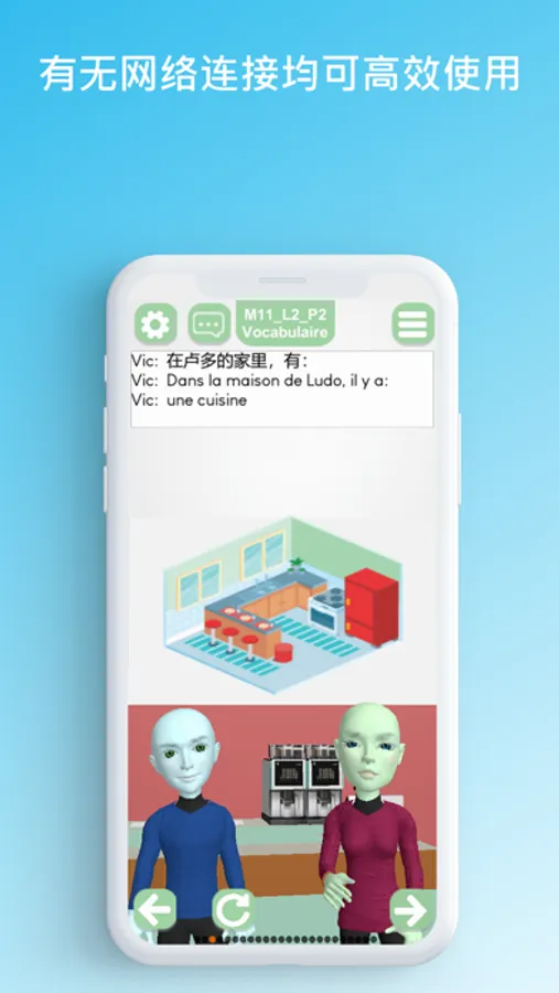 这是一个伴随您法语学习第一步的应用程序。Ludo和Vic旨在代表这个世界上的所有人,并促进性别平等,他们邀请自己进入您的日常生活,用贴近日常的法语对话和插图,帮助您学习法语,并将法语中的新单词与实际生活联系起来。