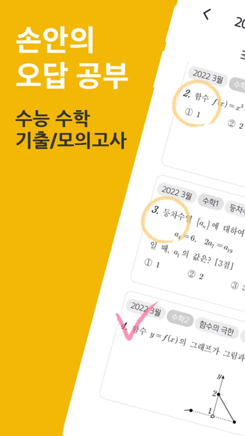 수학 기출 문제 유형을 빠르게 찾고 나만의 오답 노트를 만들어서 효율적으로 공부할 수 있는 어플로
