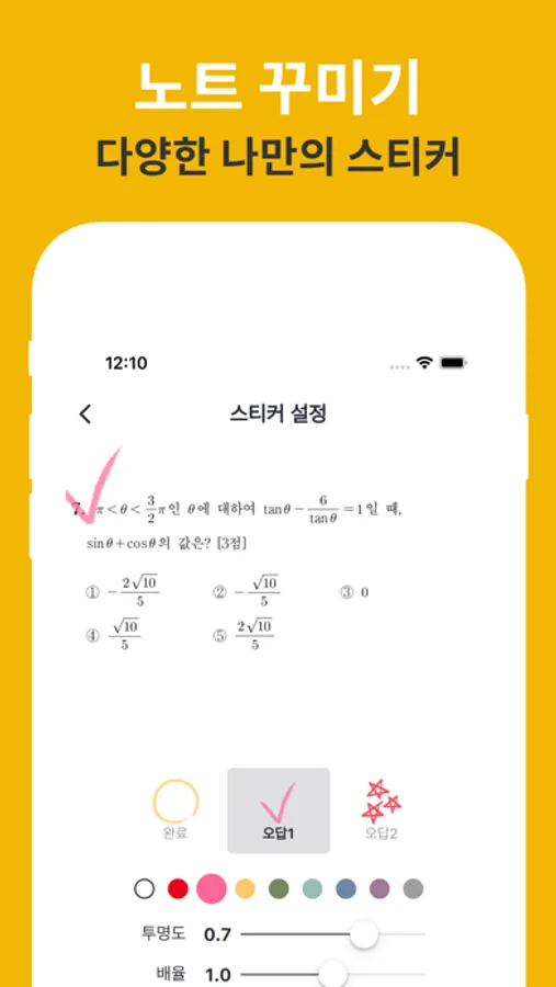 - 다양한 스티커와 테마를 통해 실제 오답 노트와 유사하게 만들수 있어요