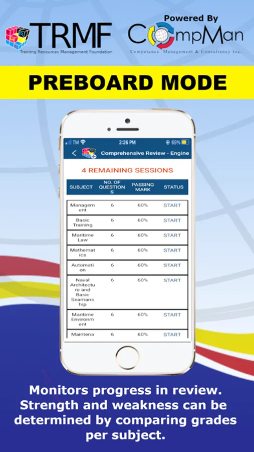 Training Resources Management Foundation (TRMF) together with Competence Management and Consultancy Inc. (COMPMAN) recognizes the value of Review for the Maritime schools in building up knowledge and understanding not only to qualify but gain the proficiency and confidence required in carrying out related tasks on board and be able to compete and excel globally in the maritime industry. To achieve this goal, TRMF together with COMPMAN took advantage of technology particularly the use of tablets and the web/ internet.