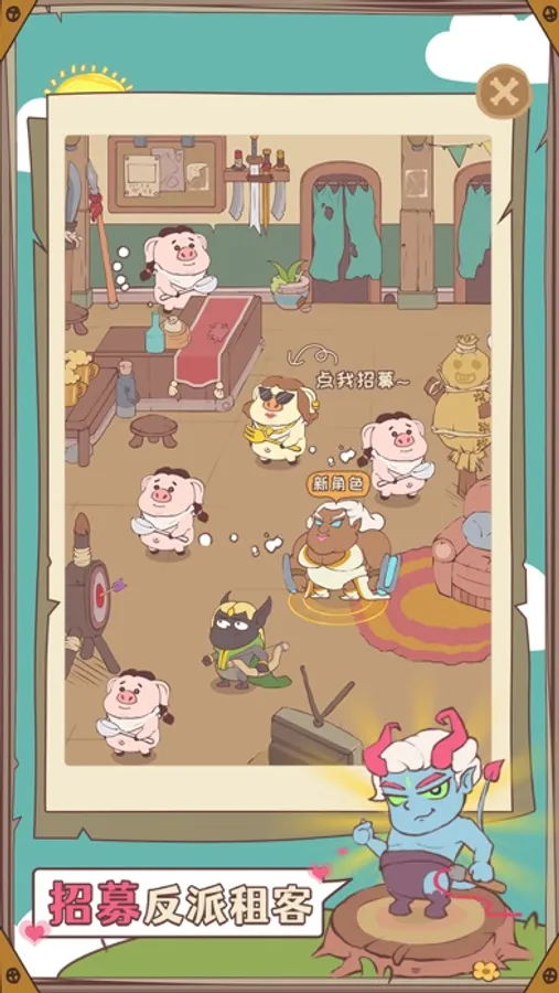 模拟经营+塔防战斗体验,还原经典游戏玩法体验,策略休闲两不误。组合租客,找到最佳防守组合策略,灵活调动走位,抵御一波波勇者的冲击!