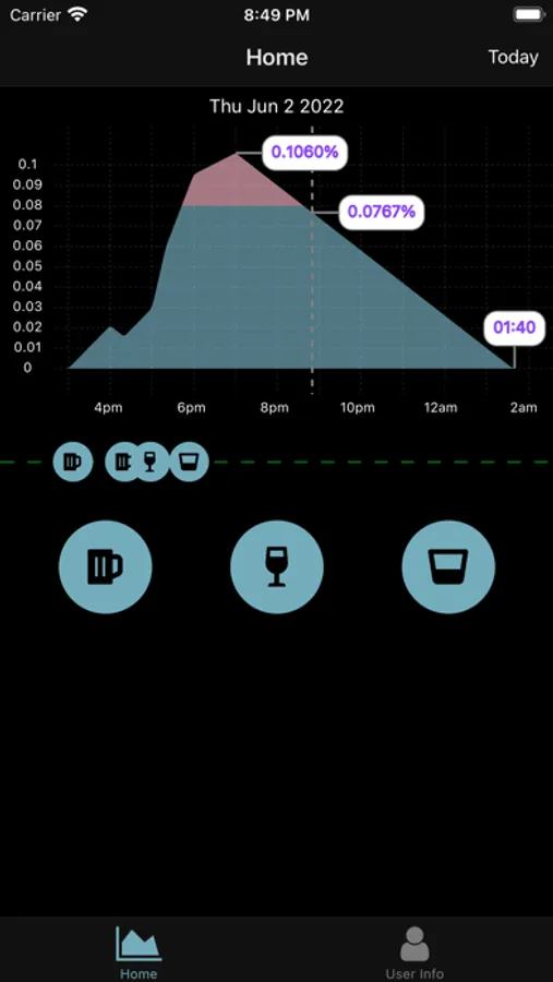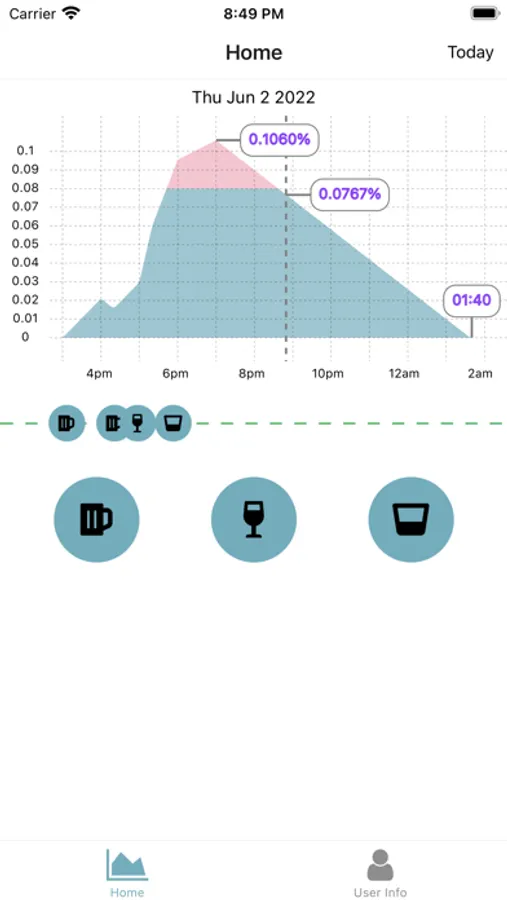 The fastest, easiest drink tracking app around! Log a drink with a single tap and instantly see how it affects your BAC.