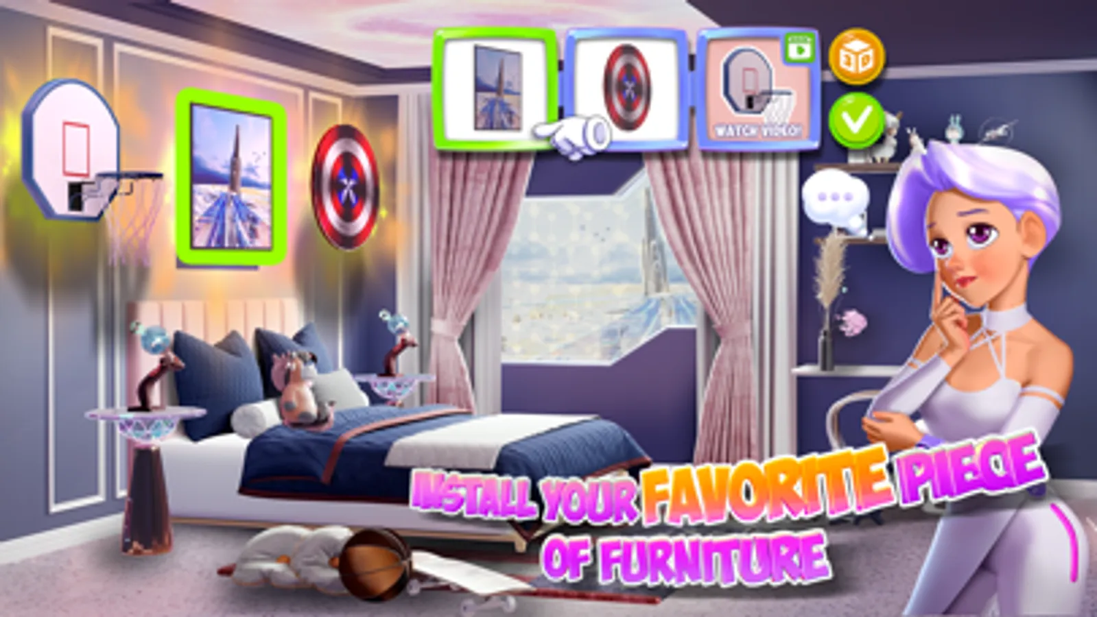 Become an interior design master! Unlock the mysterious rooms and meet lots of realistic characters! Kick off your home decorating journey to promote creativity and innovative ideas relating to the creation of futuristic living spaces, from a living room to a glorious bedroom, a luxury bathroom, to a chilled-out rooftop, and even a stunning entertainment zone.