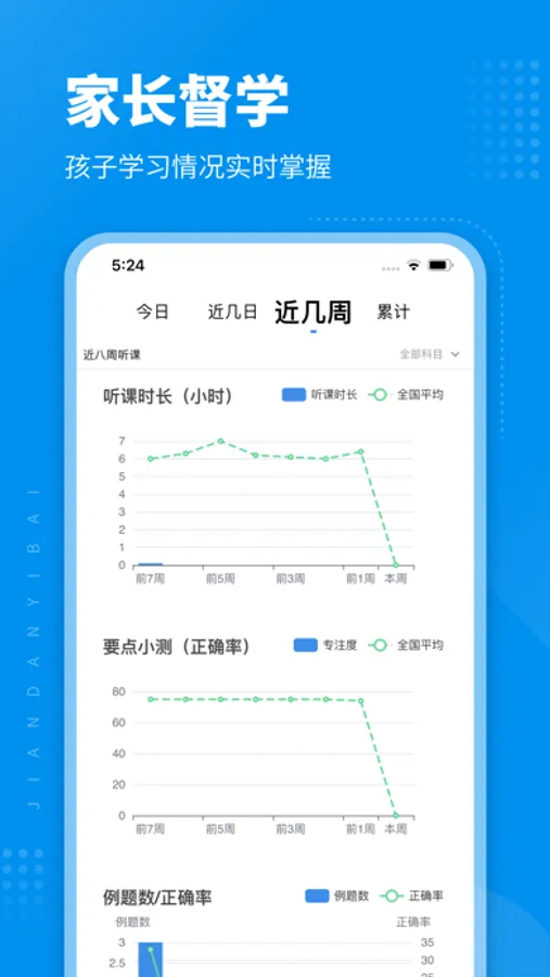 除了资源库(知识点字典)以外,简单一百还提供相关学习工具,包括错题本、答疑、家长讲座、学习报告以及“家长授权学”----考虑到学生在手机学习有难以自控的风险,正式学员的学习,需要定期得到家长的授权