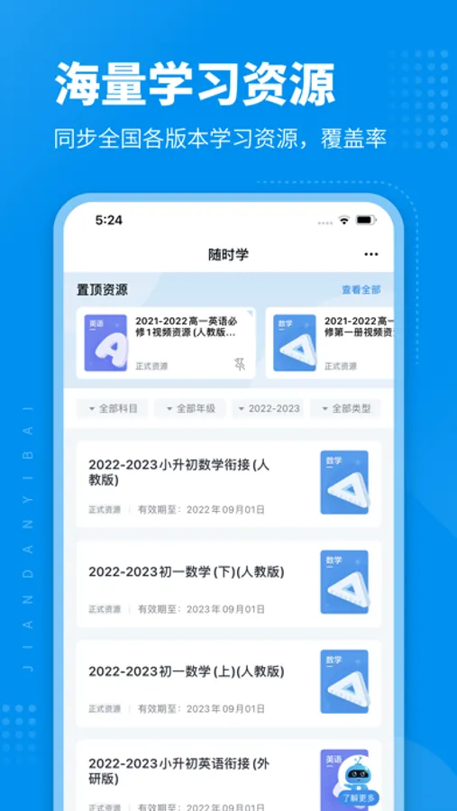 简单一百初高中资源库,相当于“知识点字典”,家长和孩子都可在需要时,针对性选择使用,是自主学习的辅助工具。