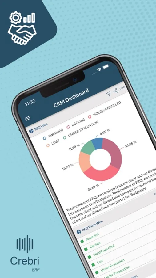 The Customer Relationship Management App allows Organizations to check and review the leads how many submitted, under preparation, under evaluation and awarded through CRM Dashboard. Purpose is to manage all company's relationships and interactions with customers and potential customers. It enables sales, marketing and customer service teams to access and manage key information in real time, wherever they are.