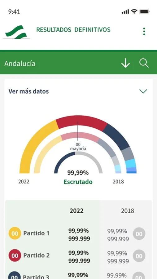 “19J Elecciones Andalucía 2022” es la aplicación oficial y gratuita que la Junta de Andalucía pone a disposición de los ciudadanos para consultar los resultados de las elecciones al Parlamento de Andalucía del 19 de junio de 2022. Permite consultar los datos de constitución de mesas y avances de participación, así como los resultados definitivos obtenidos por todas las candidaturas por ámbito geográfico (Comunidad, provincias, municipios y distritos). También permite agrupar candidaturas para estudiar posibles composiciones del Parlamento.