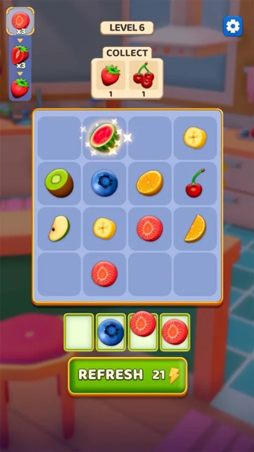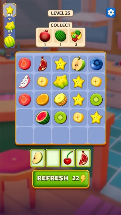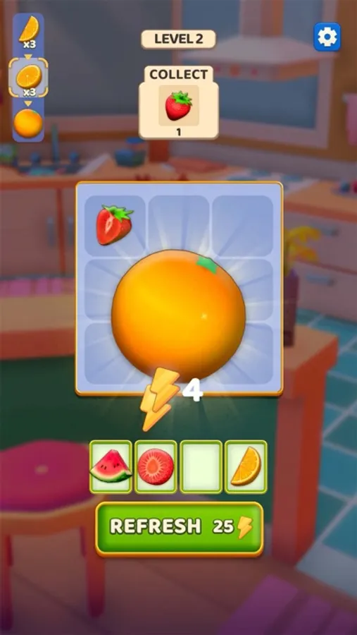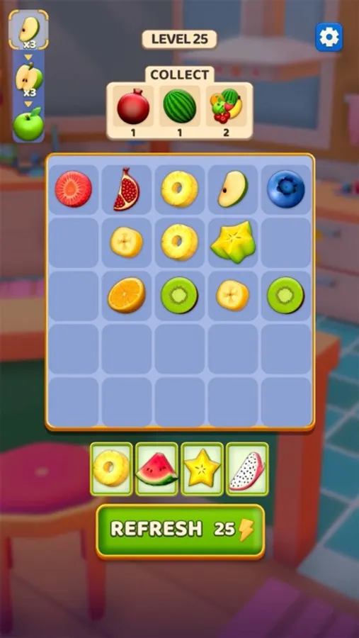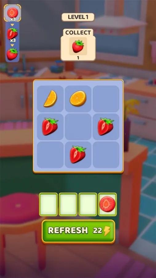 Find new fruits, choose wisely. Merge three pieces, then merge 3 bigger pieces to make full fruit. Complete your objectives to pass levels. Beat others at leaderboard and increase your skills to move forward. It is relaxing, easy to learn and very fun puzzle game. Very new concept. Hundreds of fresh levels waiting for you to play them.