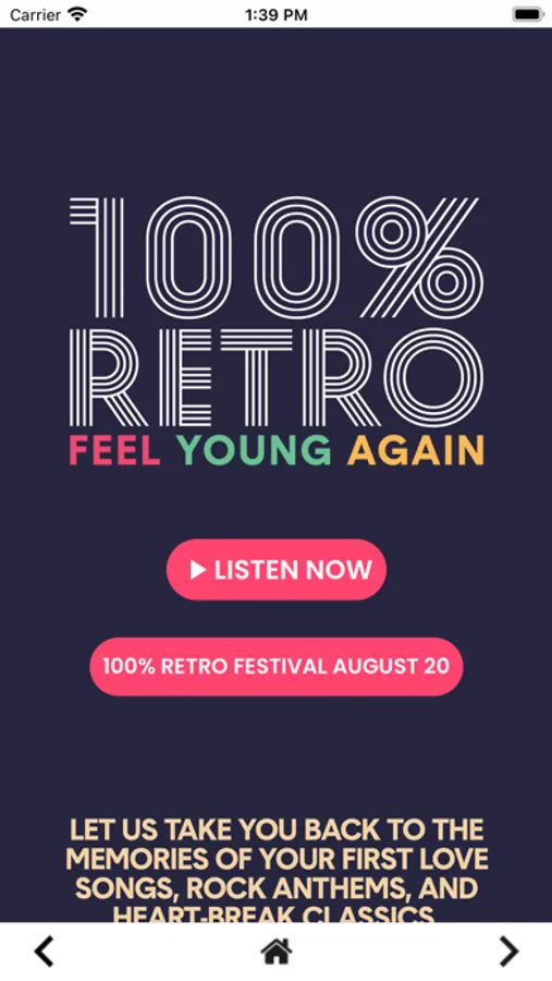 Welcome to 100% RETRO…a world-wide Radio & Retro platform where music lovers gather to relive the most memorable moments of their lives. Serving up the music of your youth and memories of the past. FEEL YOUNG AGAIN with the greatest hits of the 60s, 70s and 80s. Experience the music, memories and moments that remain forever frozen in time.