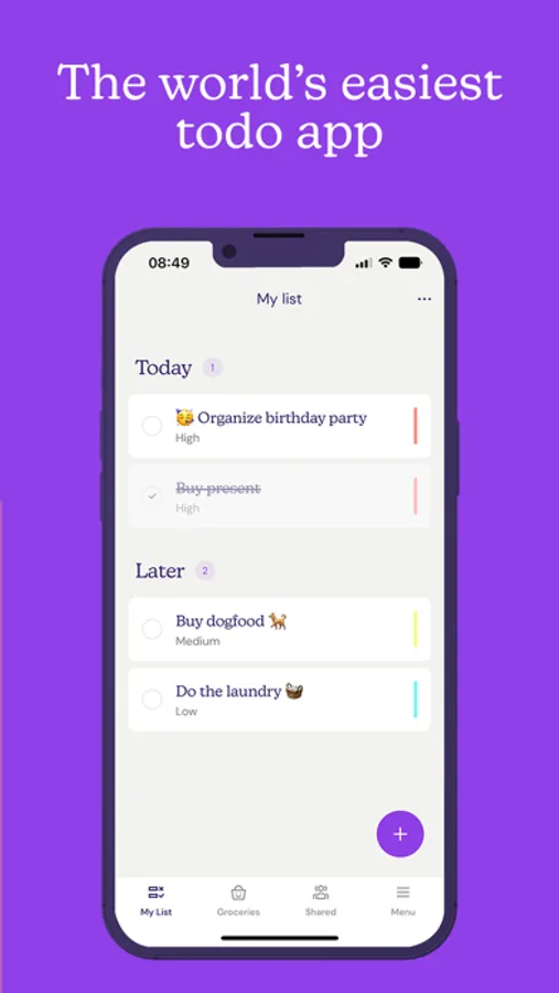 List-it is the world’s most effective and easy to use productivity app, so you can focus on the importing things in life. Easily create a to-do, schedule it for today or later, finish the task. The best part: List-it is always free.