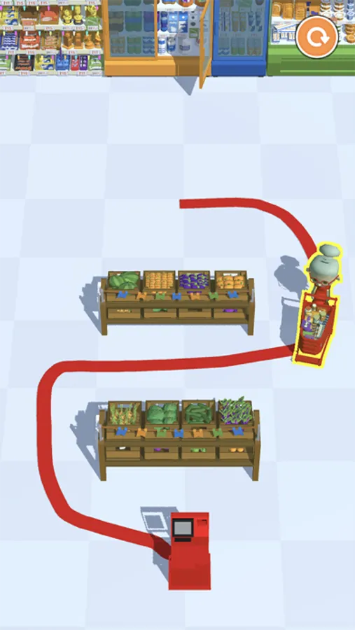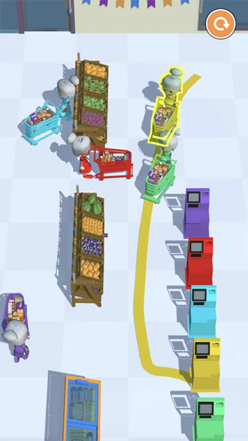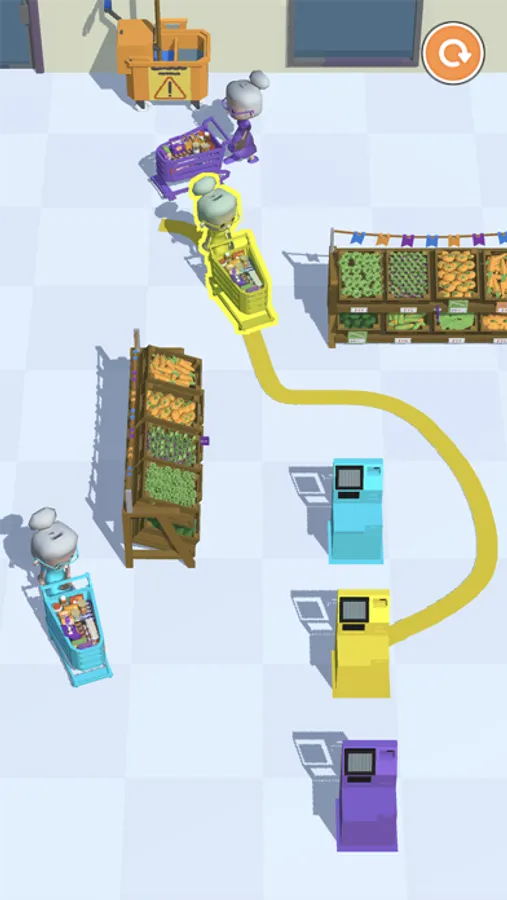 You are in a temporal paradox. Draw the grannys paths to their respective cashier. But careful, they appear one after the others without warning. Avoid the accidents!