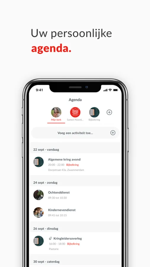 View the calendar for your entire community, but also for specific groups. Thanks to the smart group structure, each user has his own unique church calendar. Then link it to your own personal calendar and don't miss a thing!