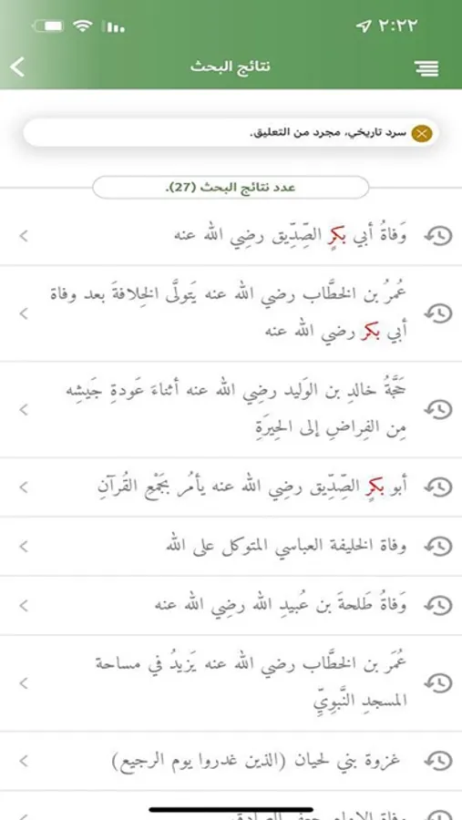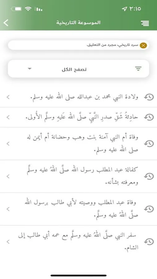 - إمكانية تصفح أي حدث تاريخي وتفاصيله، ونسخه، وحفظه في المفضلة، ومشاركته بكافة وسائل التواصل الاجتماعي.