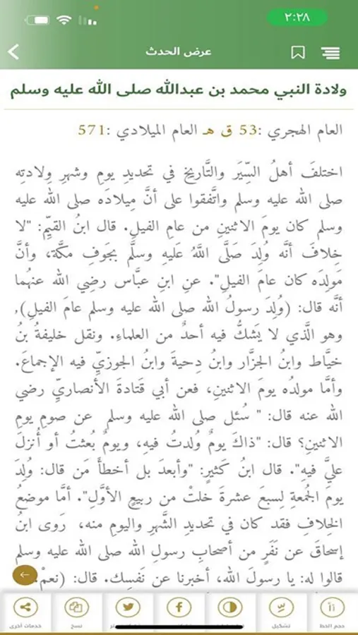 - إمكانية التحكم باختيار حجم الخط ، واختيار وضع القراءة الليلية.