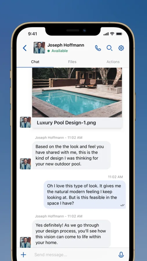 With Salvo Pools, you can plan, design, and build your dream pool from the convenience of your mobile device. Use our app to interact with our team. Text, meet on video, share documents and image files, receive real-time updates on your project throughout the entire process, and more.