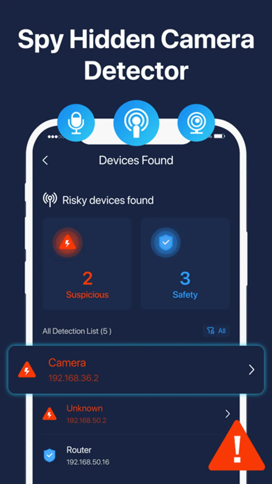 Wifi Detect can help find all unknown devices around you, and it can protect your privacy from unknown devices. One click detects unknown devices in different places, it is a good helper for you to stay in peace outside! Our algorithm will scan your network and find out any online device.