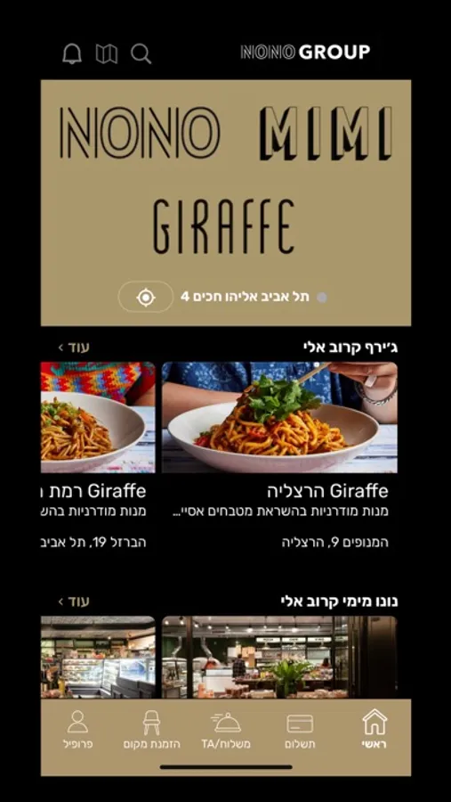 באפליקציה של קבוצת המסעדות NONO MIMI GIRAFFE,