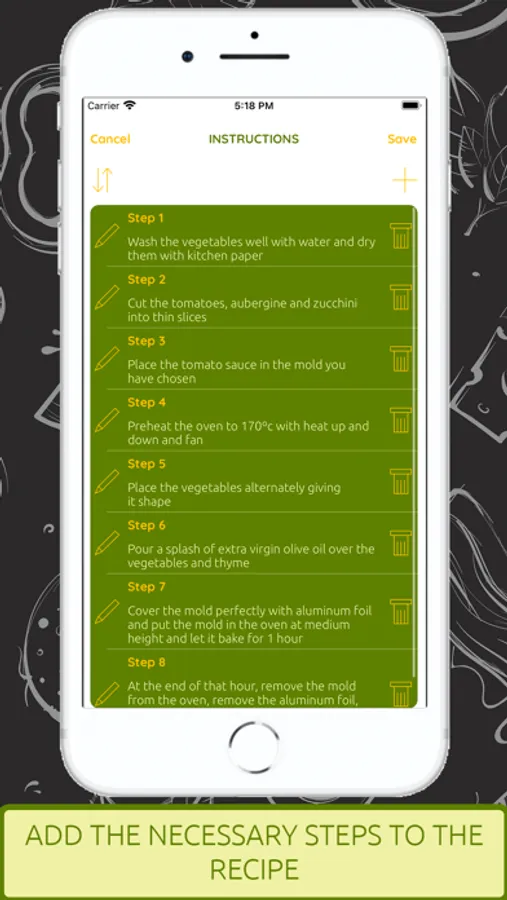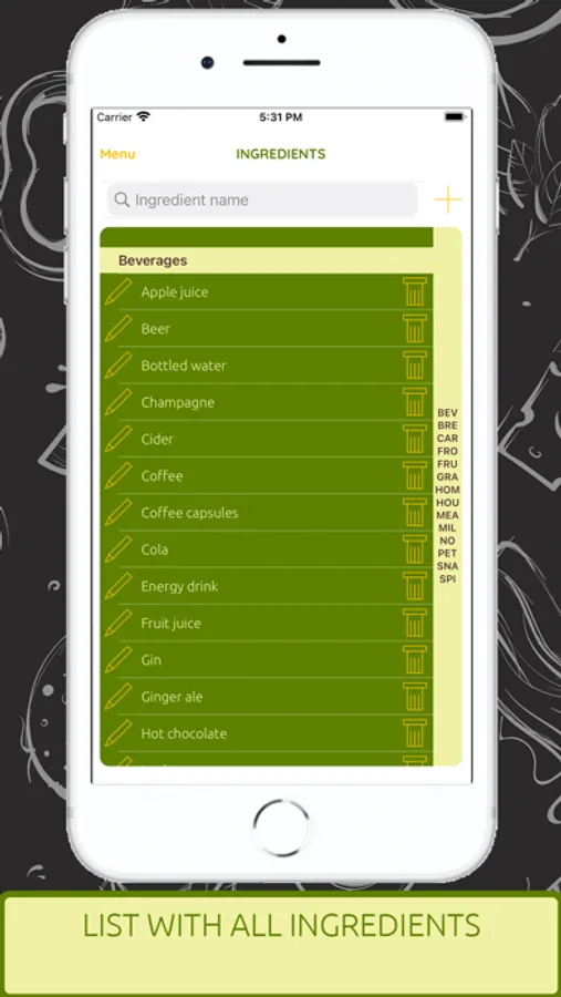 - Add ingredients to the recipe from the ingredients list of the application, you can add the amount of the ingredient needed for the recipe.