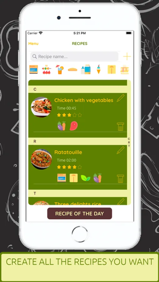 - You can see a new recipe of the day every day, and save it in your application or share it in PDF or Text with whoever you want.