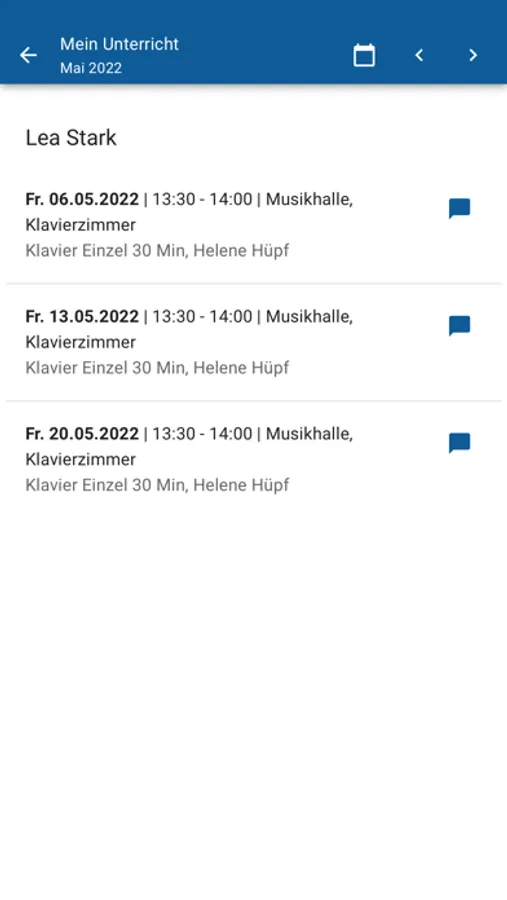 Alle Funktionen zum Austausch von Nachrichten zwischen Lehrkräften, Eltern, SchülerInnen und der Musikschule setzen keinerlei Kontaktinformationen voraus. Die Übermittlung von Nachrichten erfolgt über eine App-interne ID. Zum Chat und Nachrichtenaustausch sind keine E-Mail-Adressen oder Handynummern erforderlich!