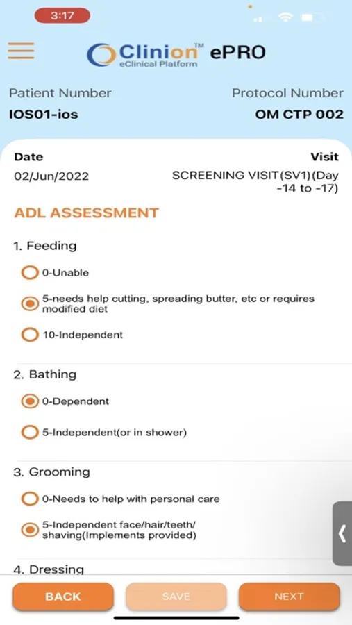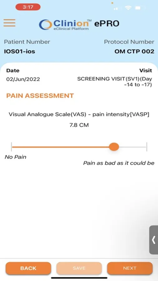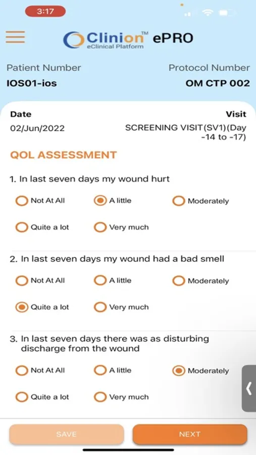 Clinion OM-CTP-002 ePRO / ePRO (e Patient Reported Outcomes) application is a module of Clinion EDC where patient information is captured at source. The patient enters his information into the patient diary App and it is synced and stored into the EDC.