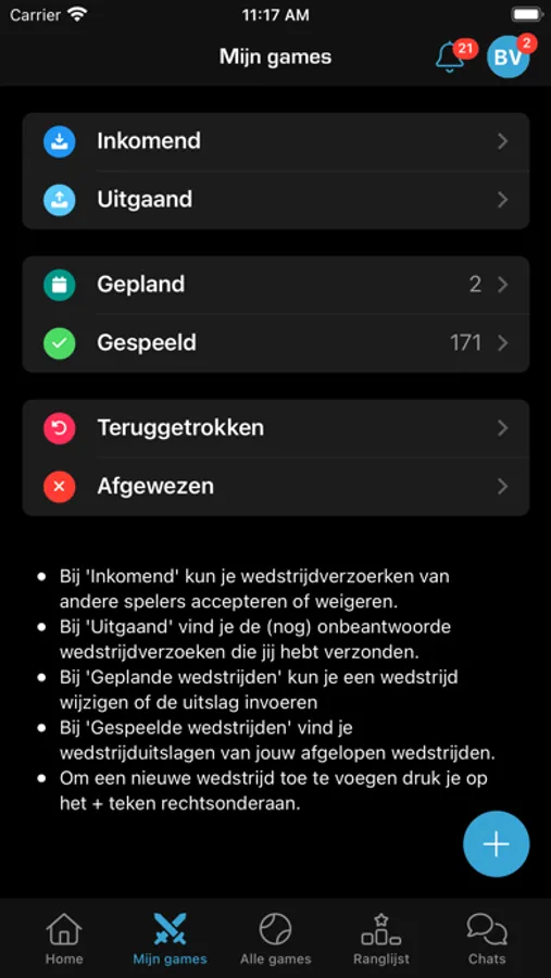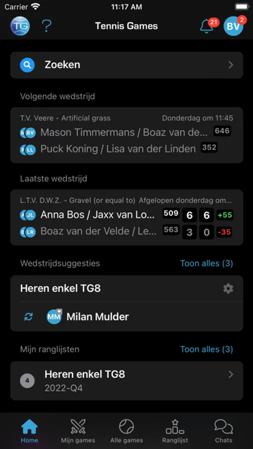 Wij spelen tenniswedstrijden. Op een nieuwe manier. Een manier die past bij de hedendaagse tennisser: Eenvoudig zelf wedstrijden plannen en spelen met de Tennis Games App. Waar en wanneer het jou uitkomt, tegen wie jij wilt. En dat in een unieke en competitieve vorm door heel Nederland. Je bent van harte uitgenodigd om mee te doen!