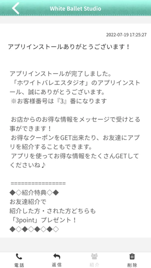 White BalletのアプリをSNSを通じてお友達に紹介する事ができます。