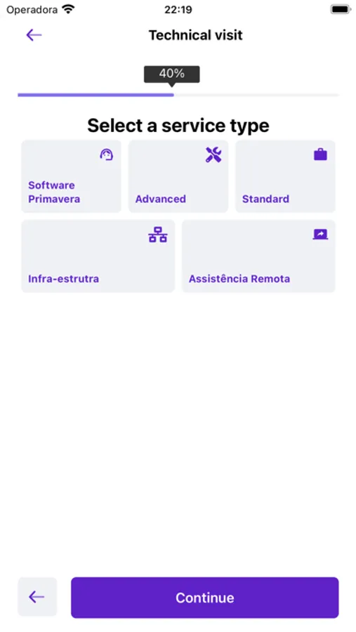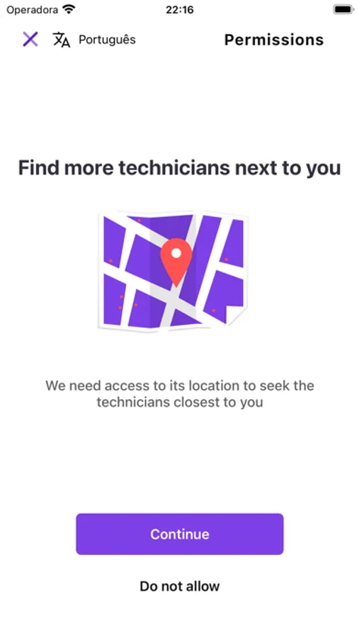 Para solicitar um técnico, basta baixar o APP RADAR, relatar seu problema e agendar o atendimento para o dia e hora que preferir. Encontraremos o técnico mais perto e tudo será acompanhado pela nossa equipa de operações.