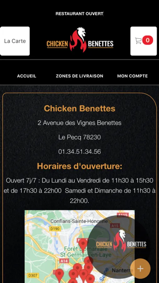 L'application Chicken Benettes vous permet de commander en ligne ou par téléphone via votre application. Vous pouvez consulter notre carte et choisir vos produits.