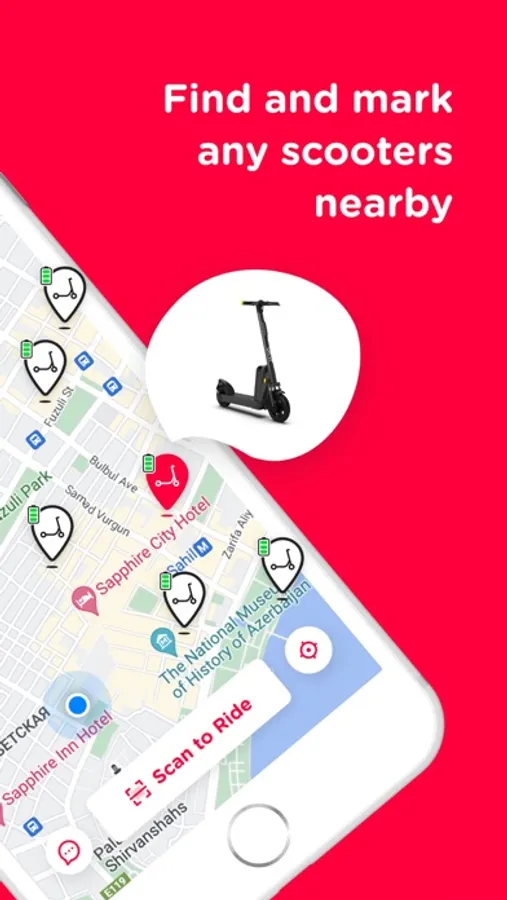 2. Yaxınlıqda olan skuteri tapmaq üçün xəritədən istifadə et
